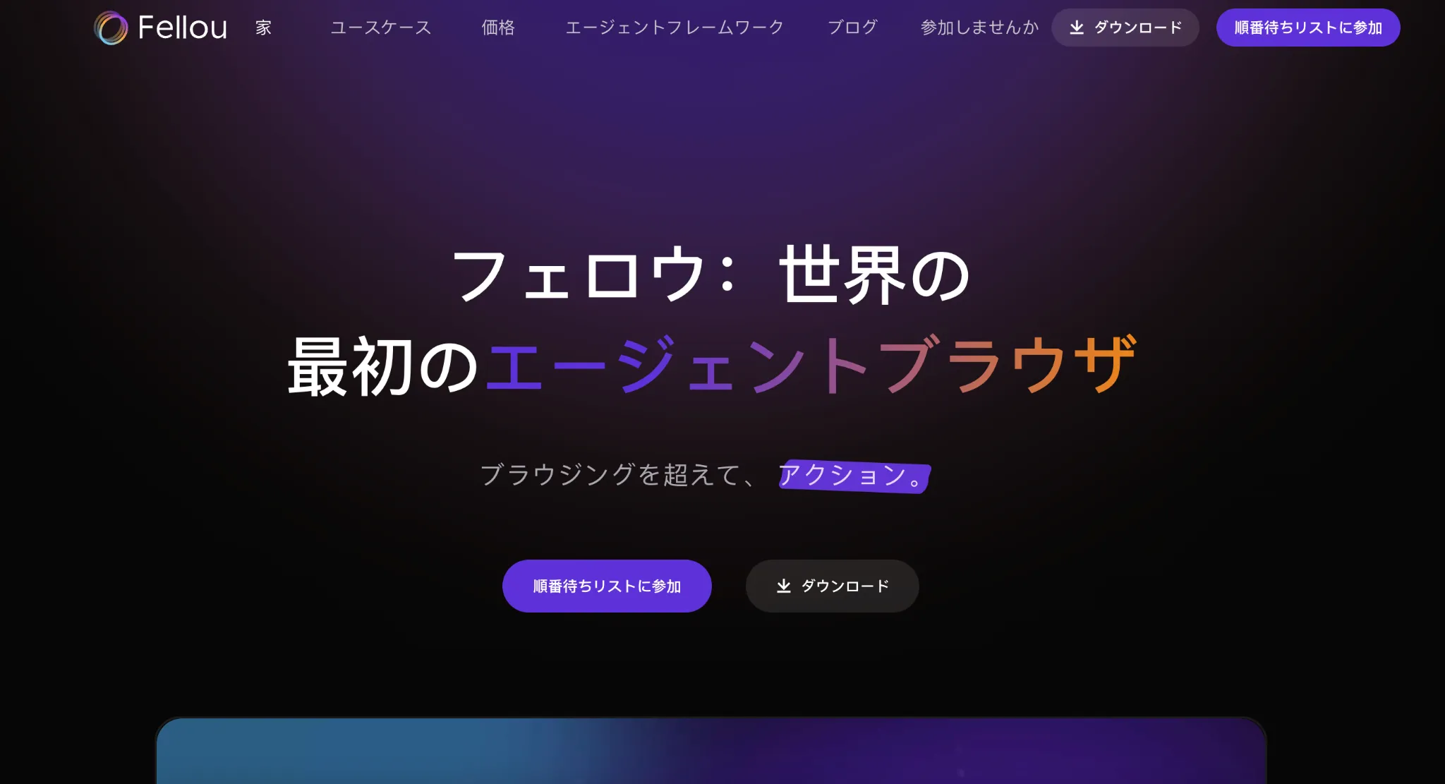 Fellou(フェロー) | 自動リサーチ・レポート生成に優れ、複数サイトの横断調査や作業自動化が可能 | 複数情報源同時検索、入力作業94%削減 | 2025年5月リリース。オープンソース |