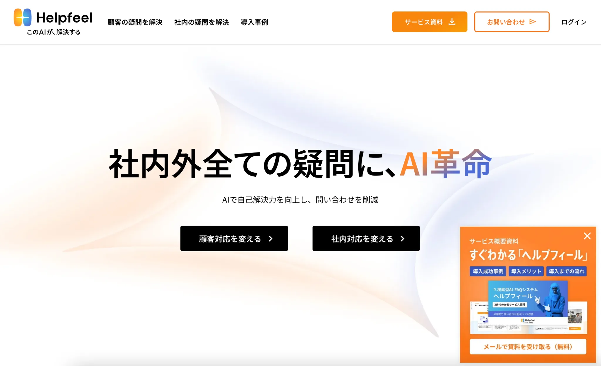 参考:Helpfeel AI(ヘルプフィール エーアイ) 公式サイト