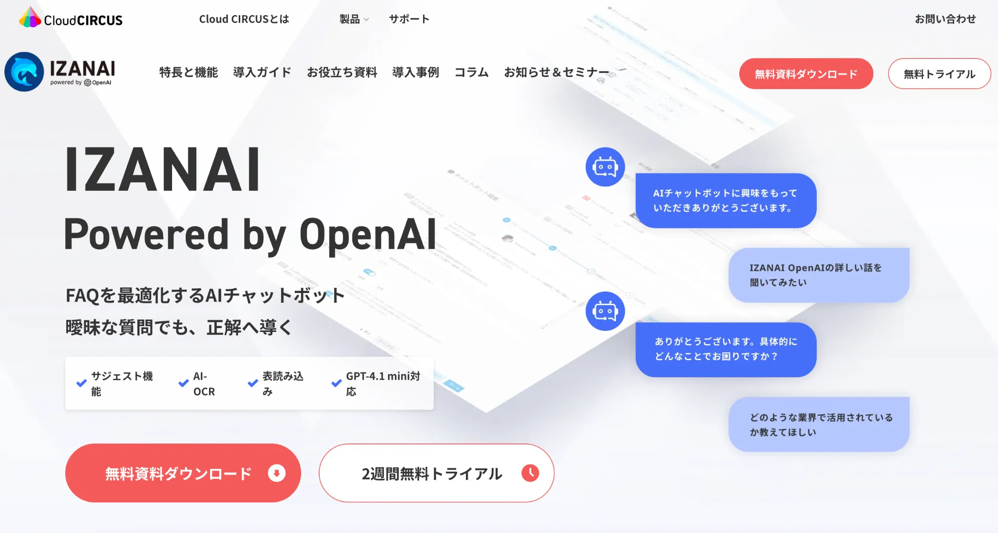 毎日の問い合わせ業務に時間を取られていませんか?AIチャットボット「IZANAI(イザナイ)」は、FAQやマニュアルの情報をもとに、自動で高精度に回答する生成AIチャットボットです。ノーコードで誰でもすぐに導入でき、カスタマーサポートの定型対応を大幅に削減。