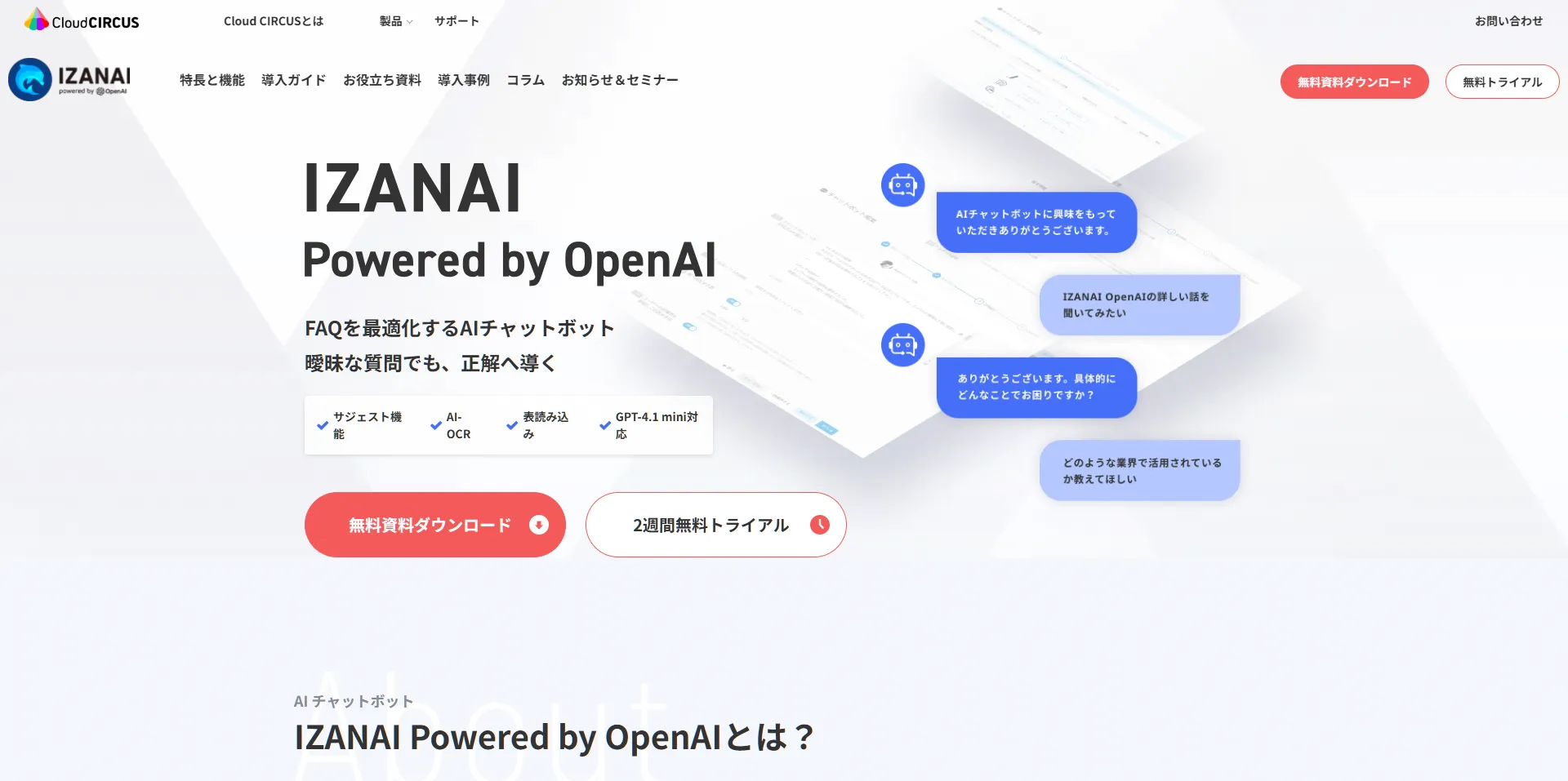 参考:FAQを最適化するAIチャットボット「IZANAI Powered by OpenAI」