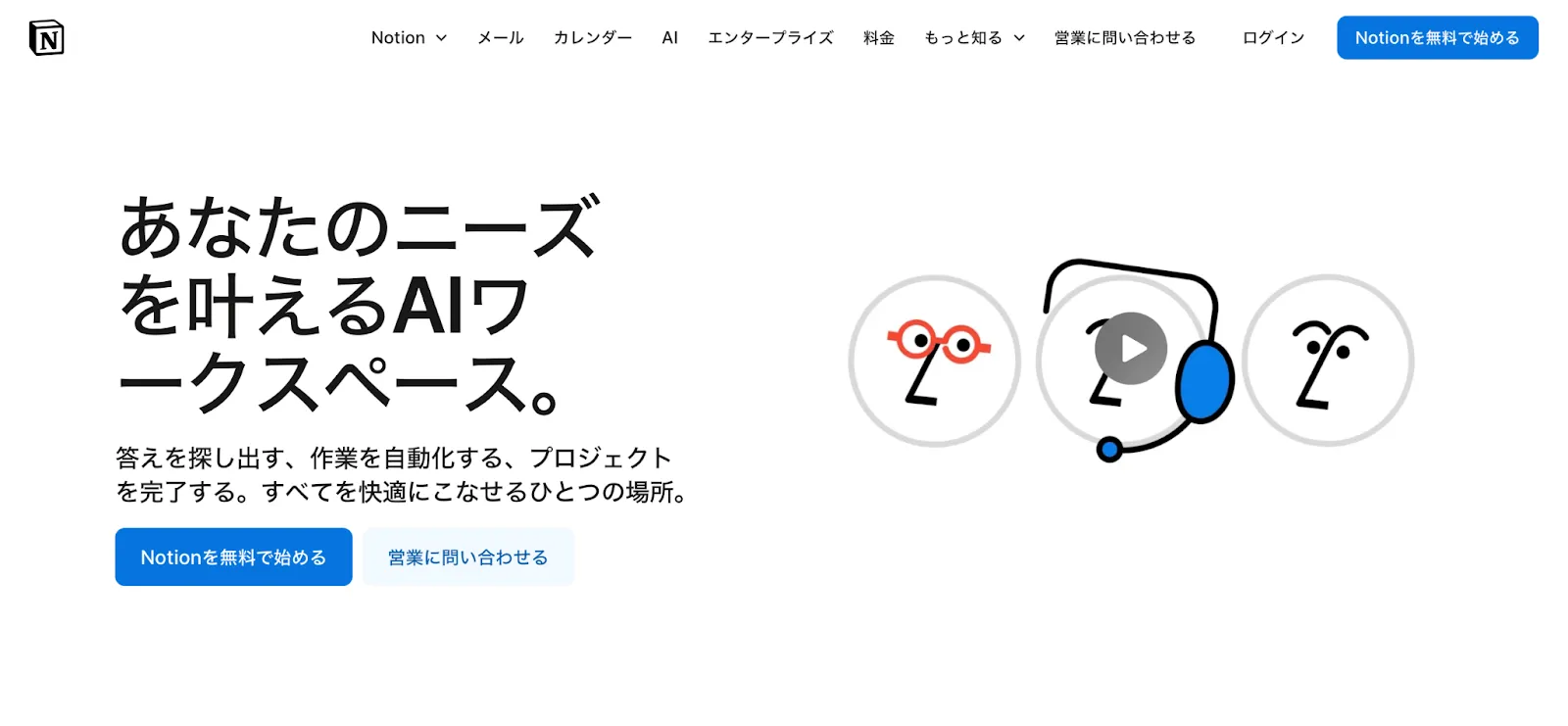 Notionは、ドキュメント作成・タスク管理・データベース管理などをひとつにまとめたオールインワンツールです。社内マニュアルの整備や業務メモの作成、プロジェクトの進捗管理など、幅広い用途に対応できます。