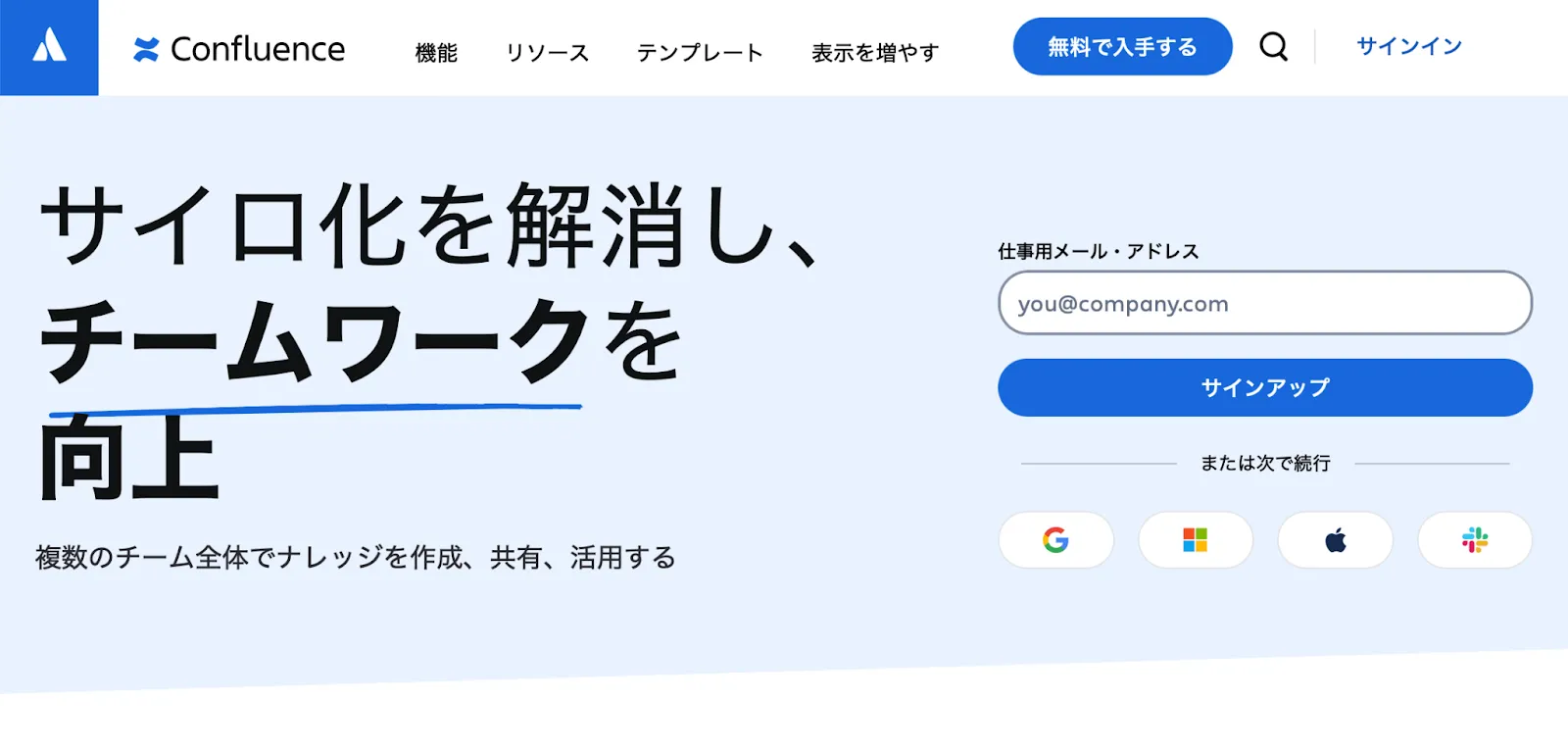 Confluenceは、チームでのドキュメント作成やナレッジ共有に特化したコラボレーションツールです。リアルタイム編集を使って、会議メモやアイデア出し、プロジェクトの計画を整理できます。コメントやいいね!、絵文字などの視覚要素も利用でき、コミュニケーションが取りやすいのも特長です。