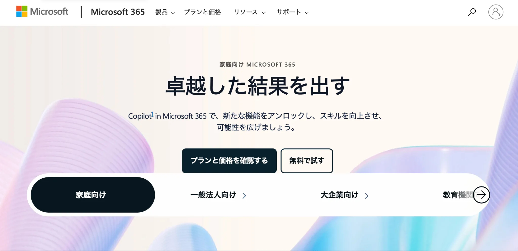 料金プラン | 無料プラン:なし(OneDrive個人向けに無料枠あり) 有料プラン: Microsoft 365 Business Basic:月額899円(年払い/1ユーザー) Business Standard:月額1,874円(年払い/1ユーザー) Business Premium:月額3,298円(年払い/1ユーザー) ※個人・家庭向けプランも別途あり |